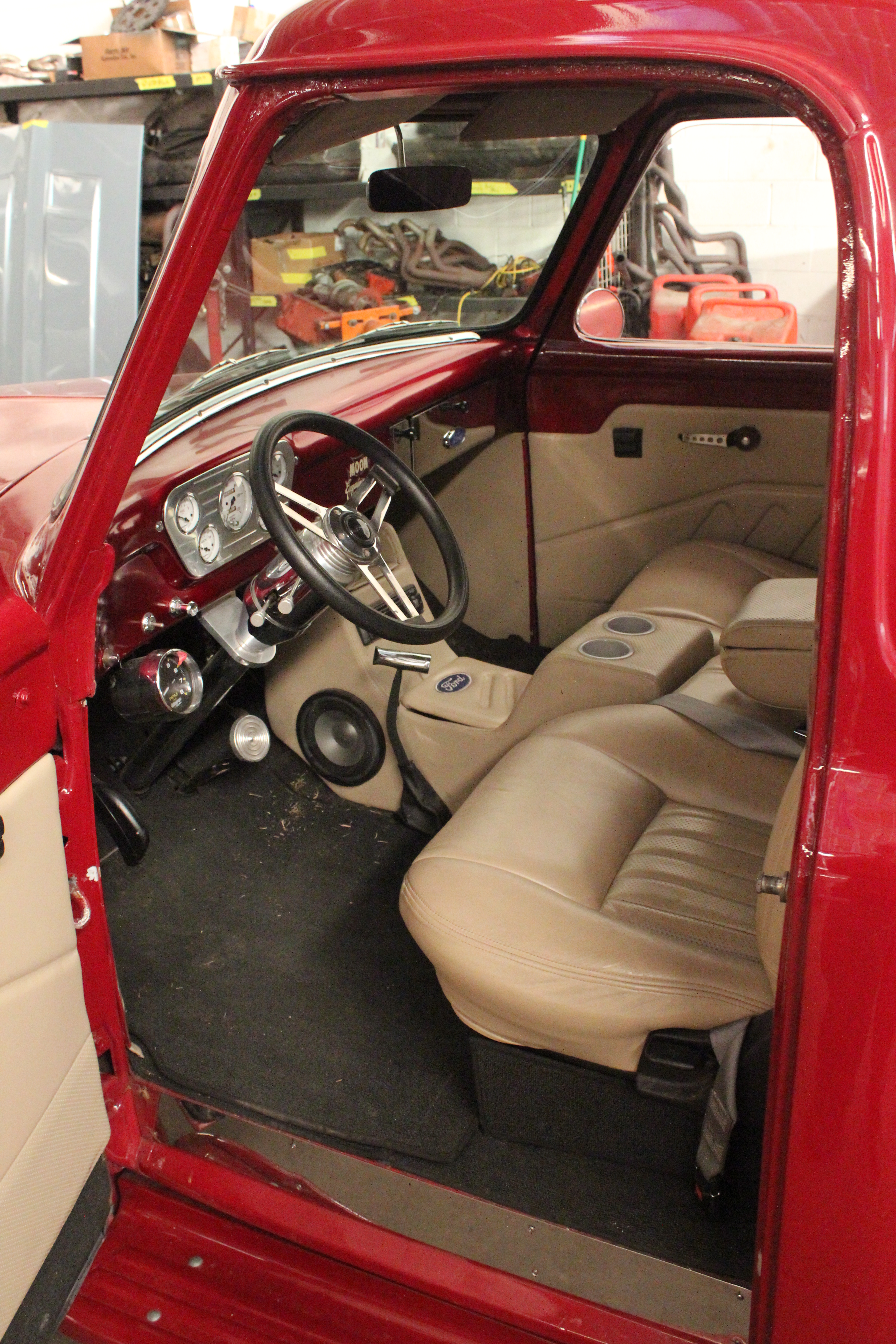 Cab improvements included a wider, more comfortable seat, sound deadener in the doors, and a large, one-piece curved windshield. The truck’s rear glass was also enlarged. Ford redesigned the instrument cluster to an easier-to-see single unit. Dash switches were relocated, bringing them within easier reach.